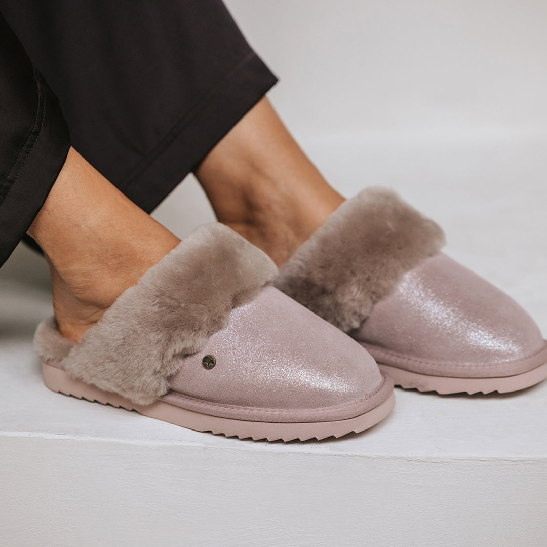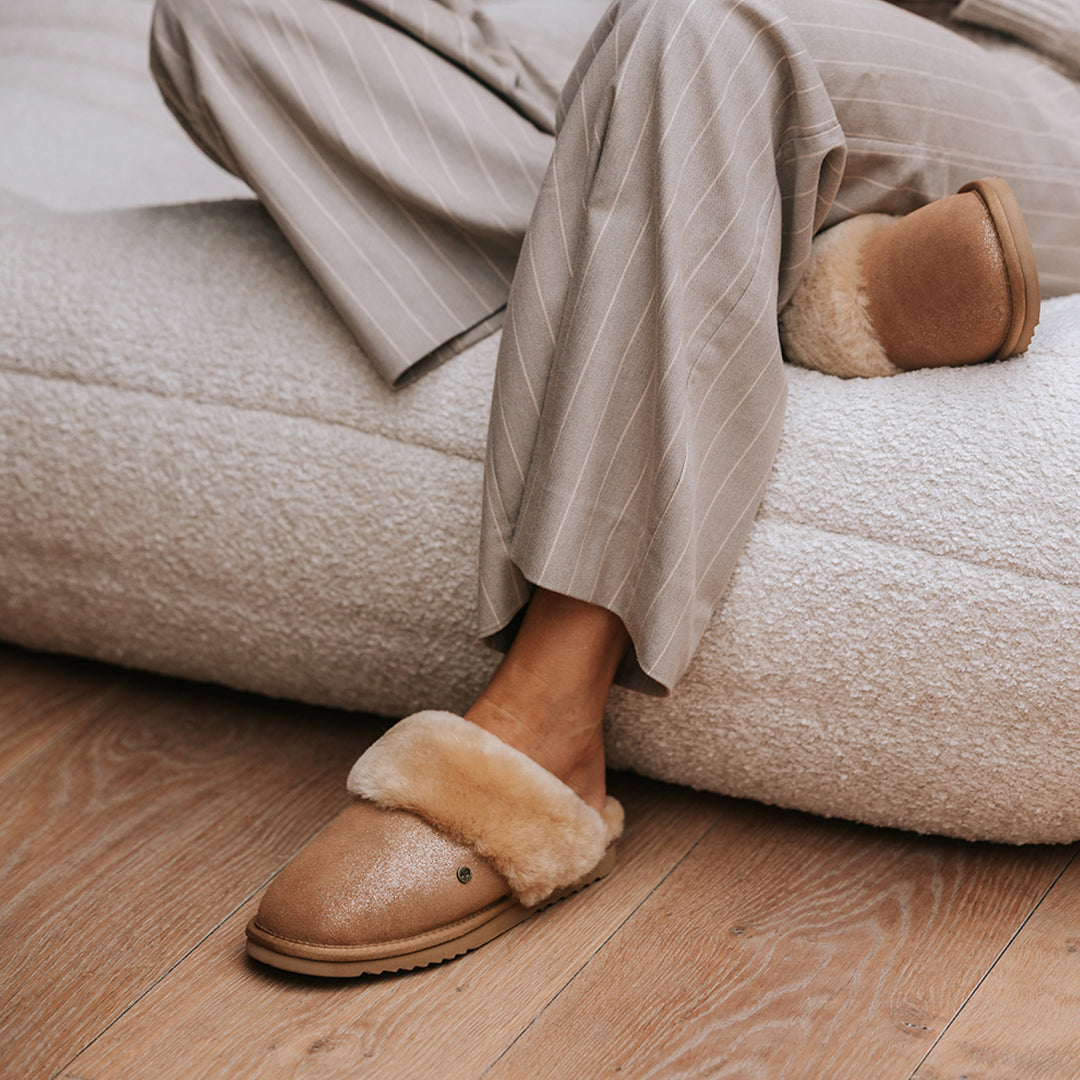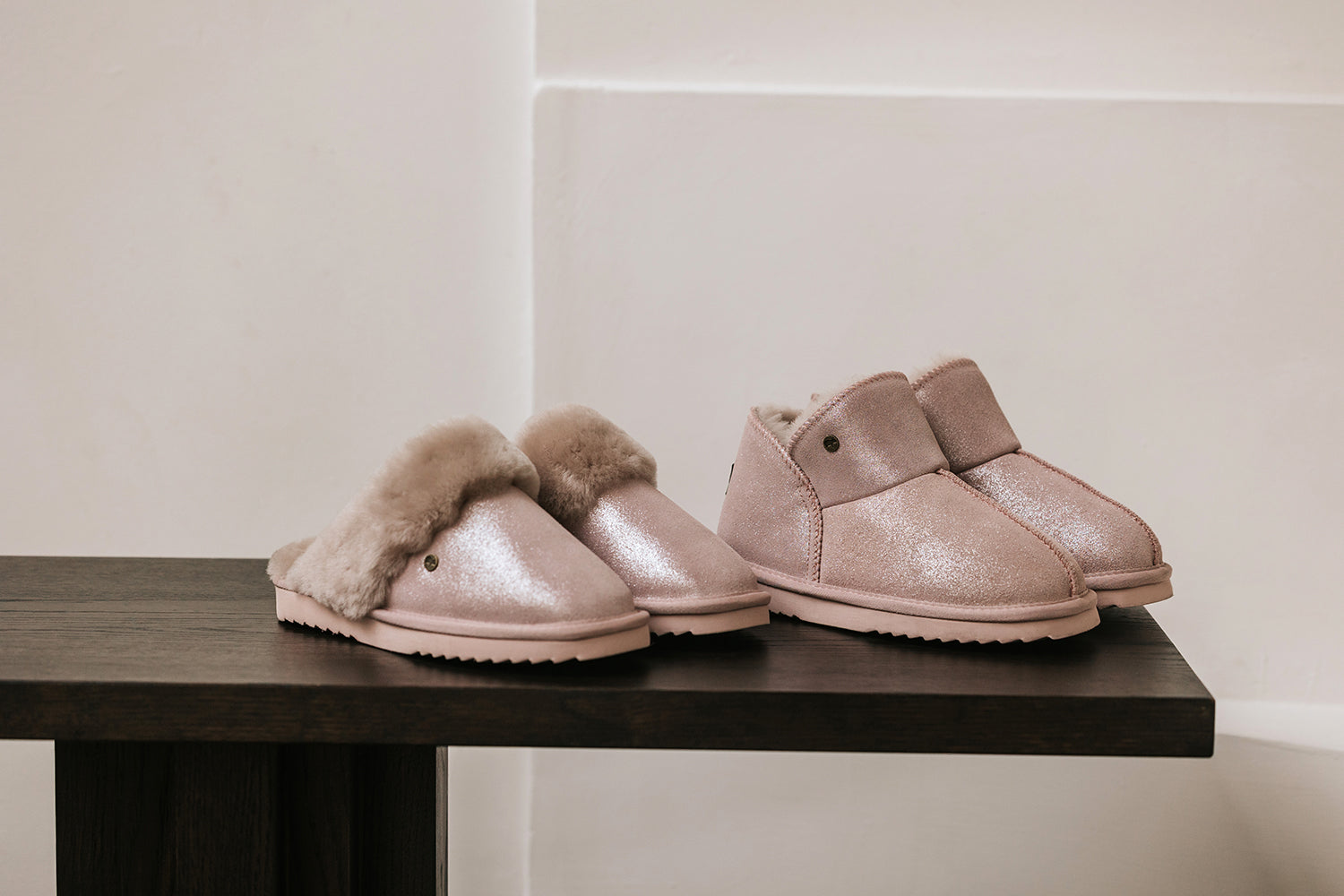 Die Collie Metallic Kollektion ist in zwei Ausführungen erhältlich: Willow und Flurry , jeweils in Silber und Gold . So gibt es immer ein Paar, das perfekt zu Ihrem persönlichen Stil und Ihrer Einrichtung passt. Diese Metallic-Slipper verleihen Ihrem Alltagsoutfit einen Hauch von Luxus, selbst an den entspanntesten Tagen zu Hause.