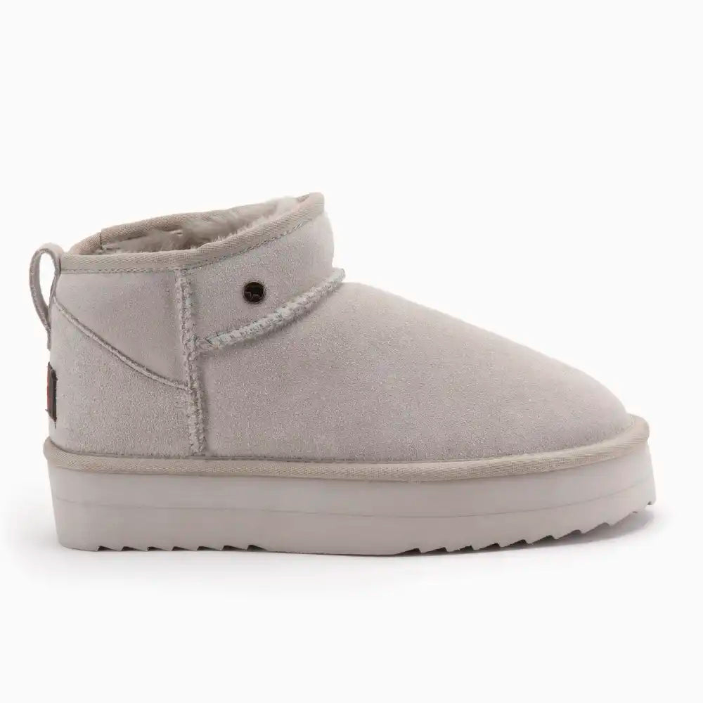 Die Stiefel sind aus hochwertigem Wildleder gefertigt und sorgen für einen luxuriösen Look und langlebige Qualität. Das Futter aus 100 % Merino-Schaffell sorgt für außergewöhnliche Wärme und Atmungsaktivität und sorgt für ein angenehmes Tragegefühl und eine gute Belüftung Ihrer Füße. Die robuste Plateausohle bietet nicht nur zusätzliche Höhe, sondern auch hervorragenden Halt und Stabilität, sodass Sie unabhängig vom Gelände sicher und selbstbewusst gehen können.