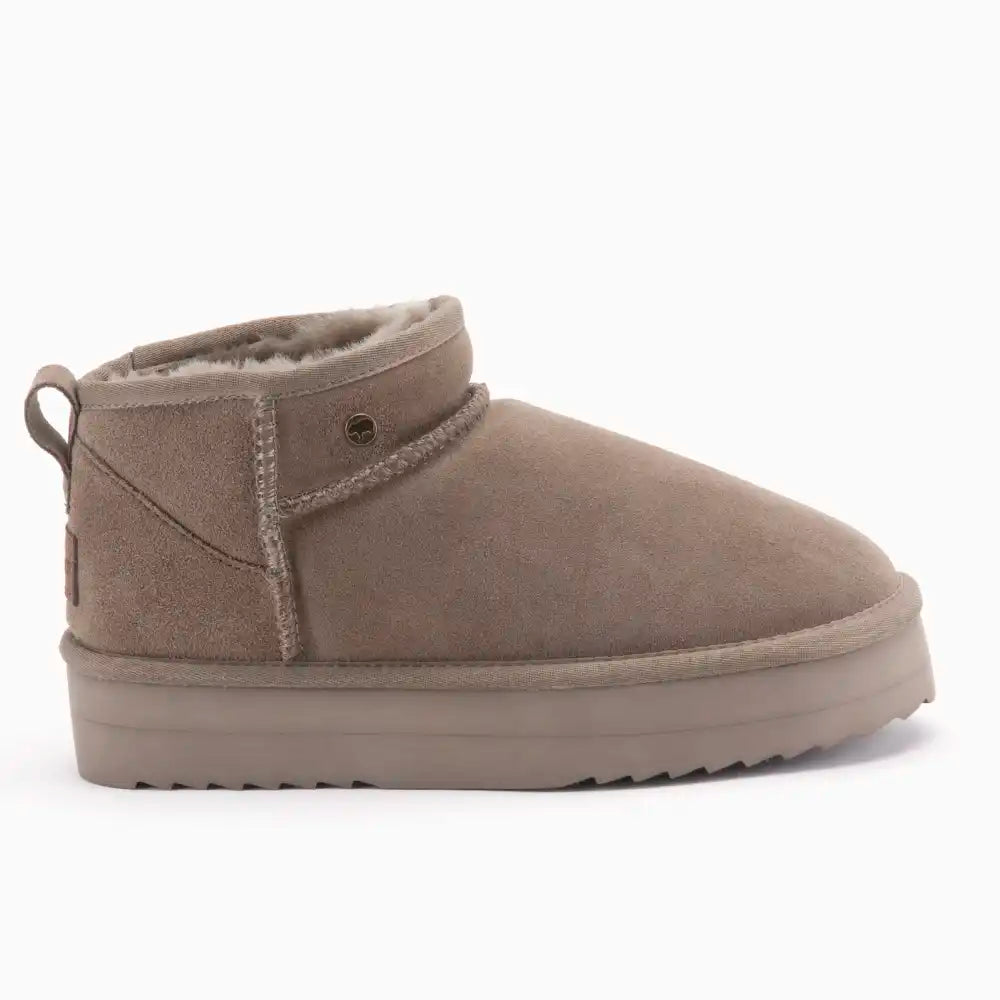Die Stiefel sind aus hochwertigem Wildleder gefertigt und sorgen für einen luxuriösen Look und langlebige Qualität. Das Futter aus 100 % Merino-Schaffell sorgt für außergewöhnliche Wärme und Atmungsaktivität und sorgt für ein angenehmes Tragegefühl und eine gute Belüftung Ihrer Füße. Die robuste Plateausohle bietet nicht nur zusätzliche Höhe, sondern auch hervorragenden Halt und Stabilität, sodass Sie unabhängig vom Gelände sicher und selbstbewusst gehen können.