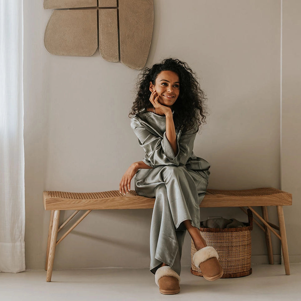 • Das Innenfutter und die Innensohle der Hausschuhe bestehen aus 100 % original australischer Merino-Schafwolle