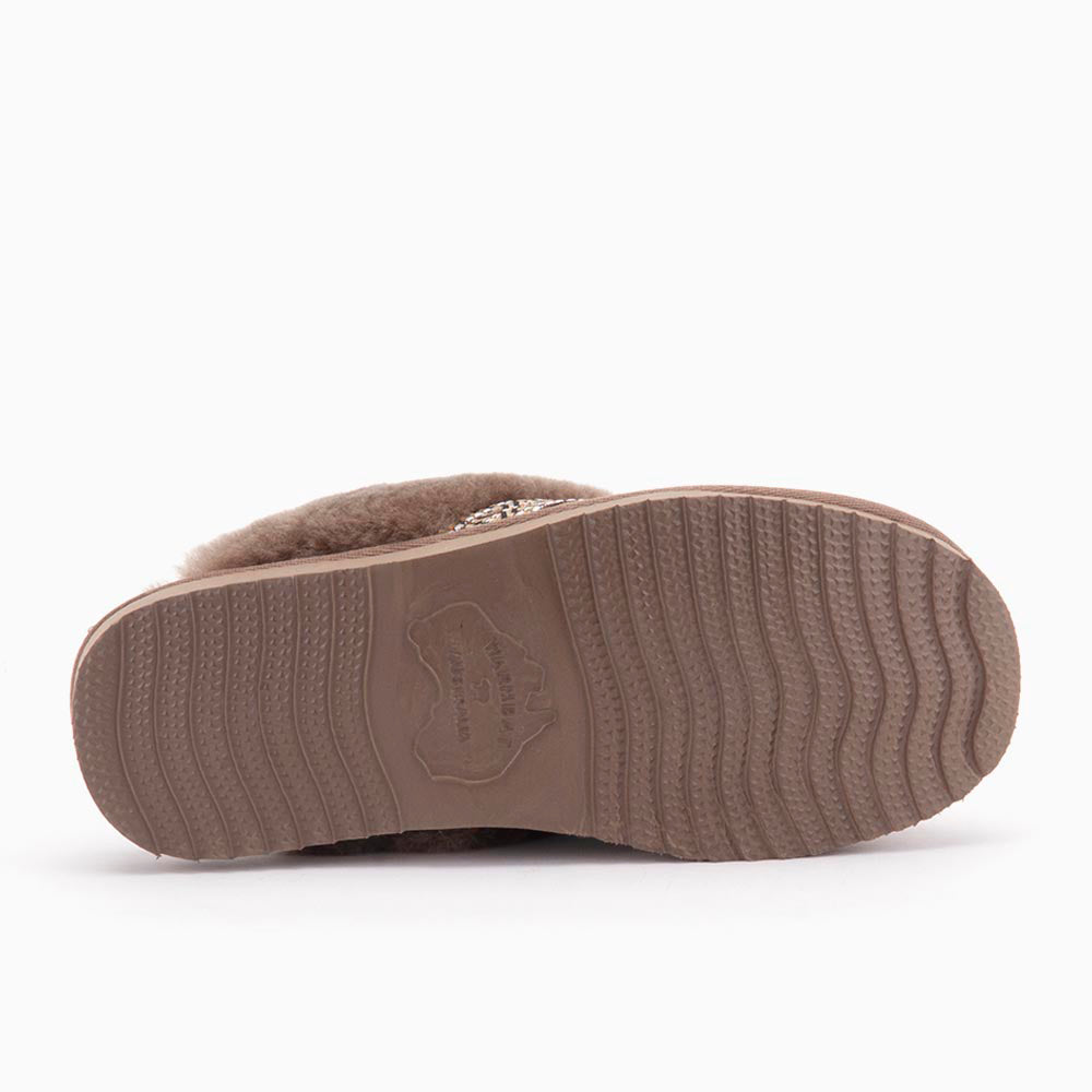 Das Innenfutter und die Innensohle der Hausschuhe bestehen aus 100 % original australischer Merinoschafwolle