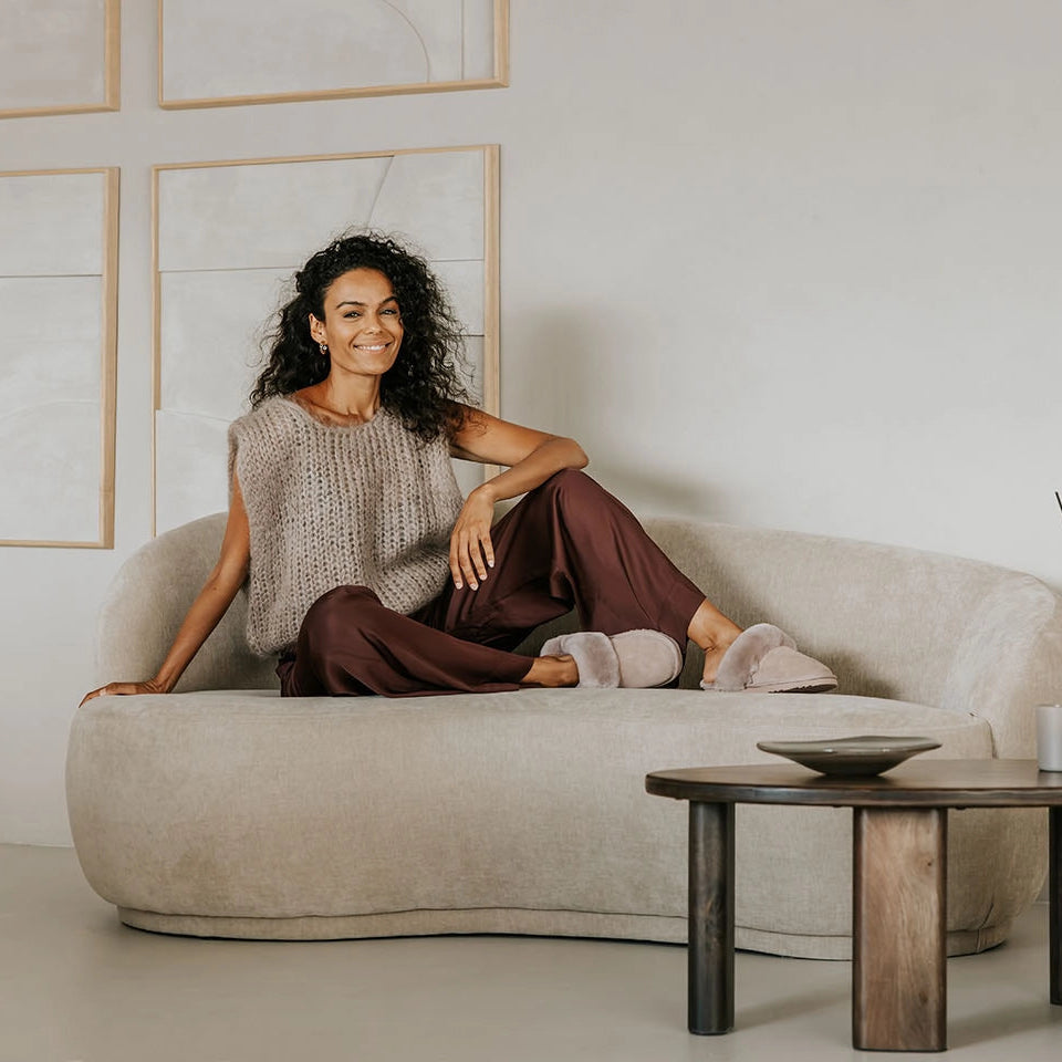 Darüber hinaus sind die Damen-Hausschuhe mit samtigem Wildleder versehen. Dies verleiht den Hausschuhen ein weiches, geschmeidiges Gefühl und strahlt Luxus aus. Die Sohlen bestehen aus einer Kombination aus Gummi und EVA (Ethylenvinylacetat). Dies ist ein strapazierfähiges synthetisches Material, das die Hausschuhe vor Kälte und Stößen schützt. Das Gummielement in den Sohlen ist sehr leicht und rutschfest und bietet zusätzliche Stabilität und Halt an der Fußsohle.