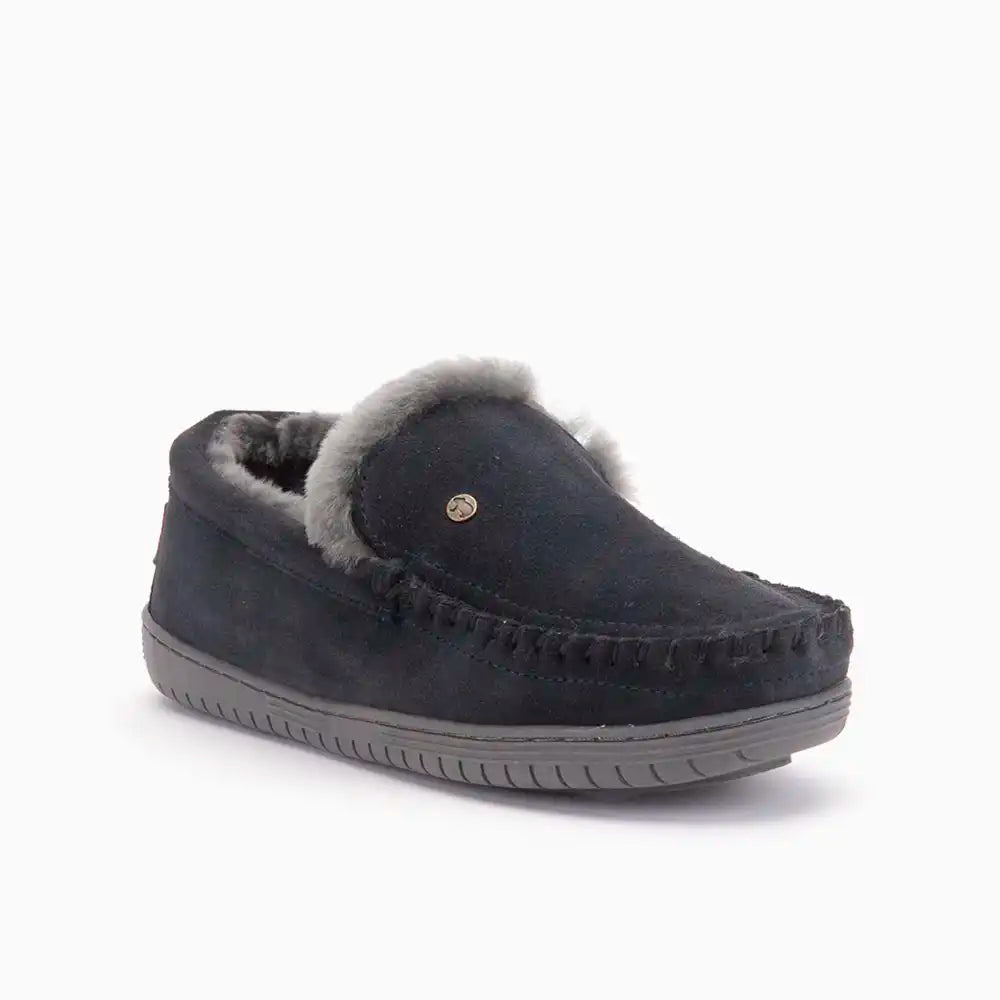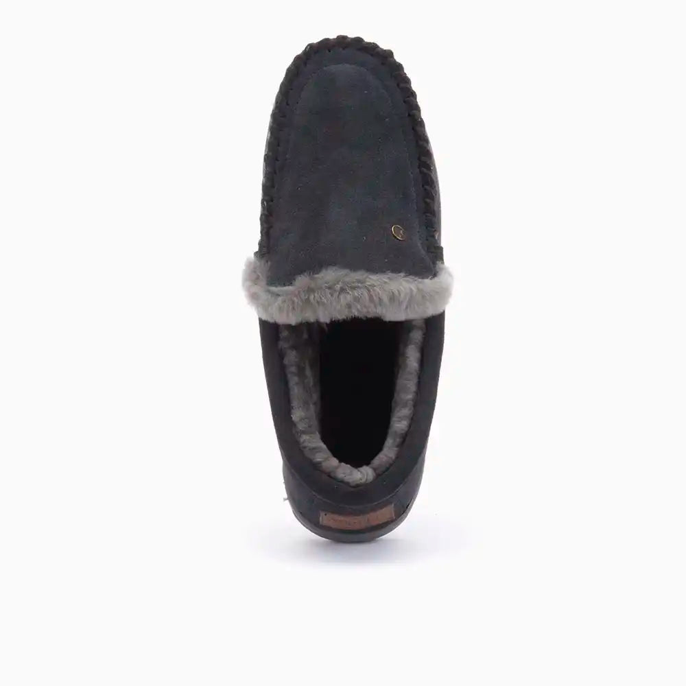 • Die Außenseite der Hausschuhe ist mit dem luxuriösen Material Wildleder veredelt