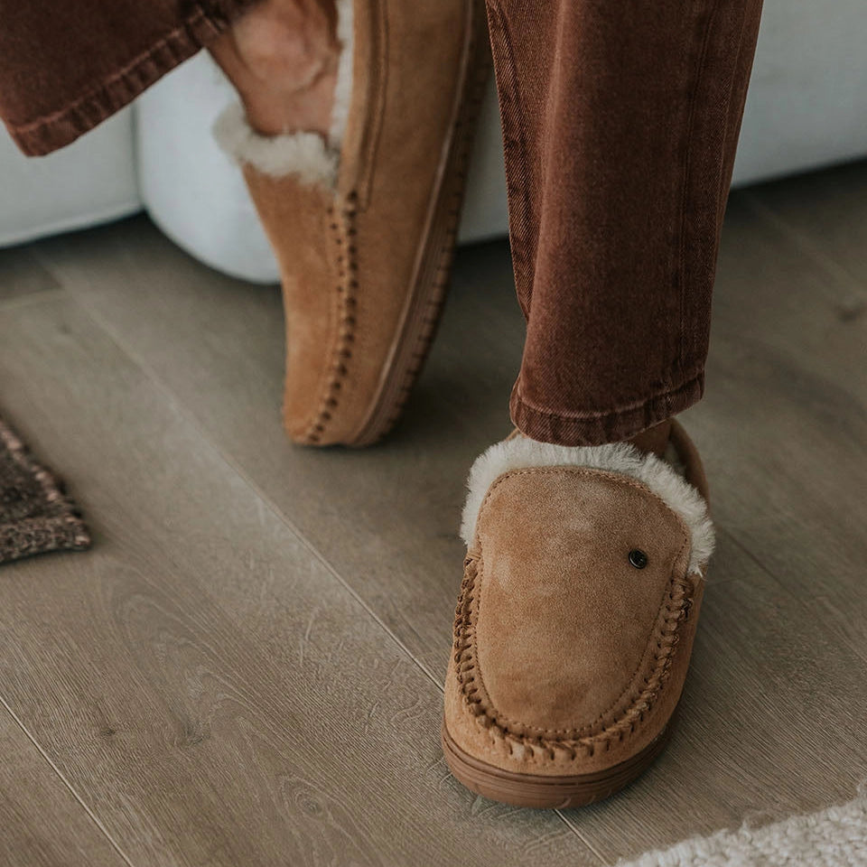 Das wunderschöne Wildleder an der Außenseite der Hausschuhe sorgt für einen atemberaubenden Look. Ein luxuriöses Material, das samtig weich und langlebig ist. Die Sohle dieser Hausschuhe besteht aus TPR (Thermoplastisches Elastomer), das hervorragenden Halt beim Gehen (Stoßdämpfung) und Schutz vor Kälte (Isolierung) bietet. Das Material ist außerdem zu 100 % recycelbar – Sie leisten also Ihren Beitrag zum Umweltschutz!