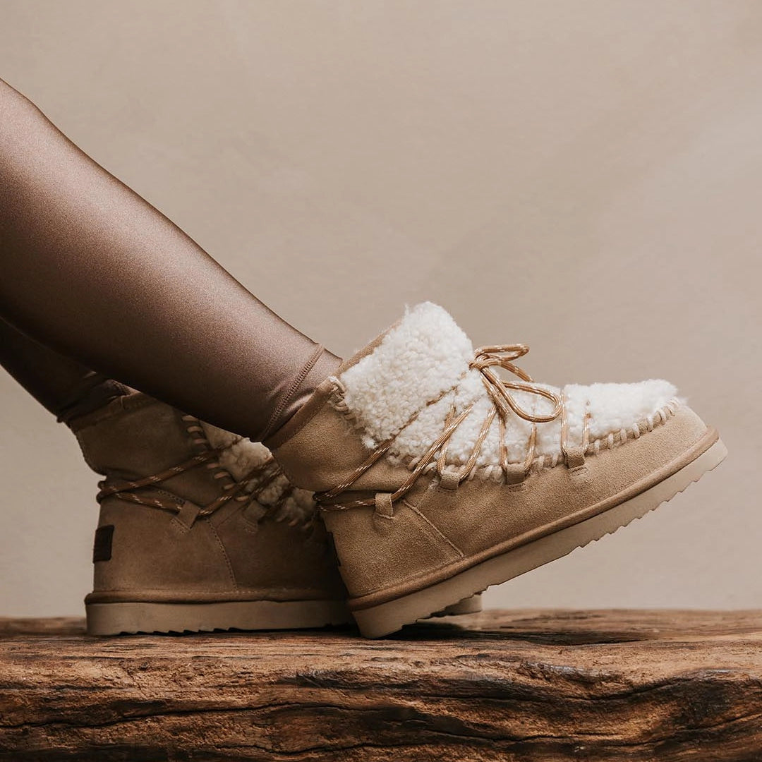 Egal ob Sie den Morgen ruhig beginnen oder den Abend entspannt ausklingen lassen, mit dem Warmbat Kalbarri Suède Lace Curley Wool Ecru genießen Sie stilvollen Komfort in wunderbar weichem Design.