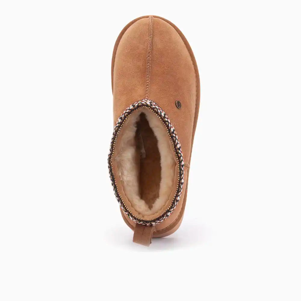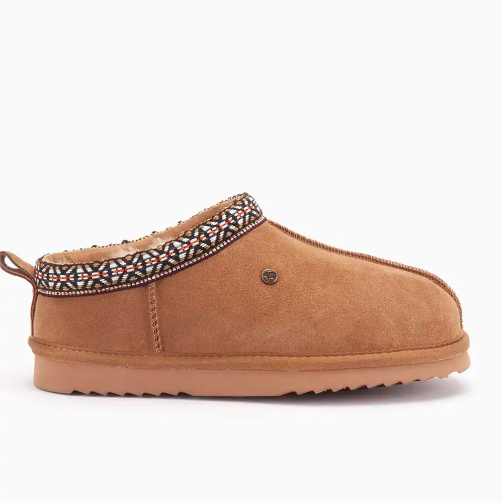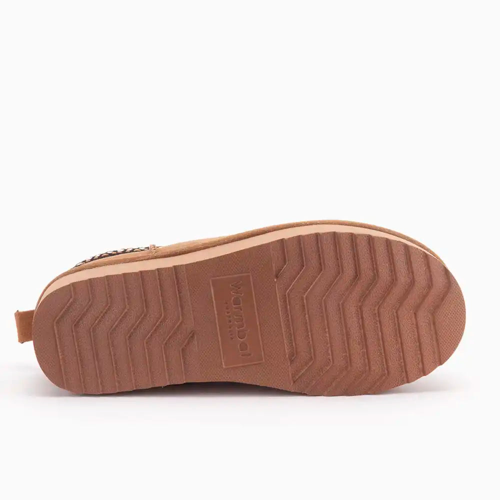 Warmbat Kynuna Suede Tape Cognac – Warmer Damen-Slipper aus Merinowolle und Wildleder