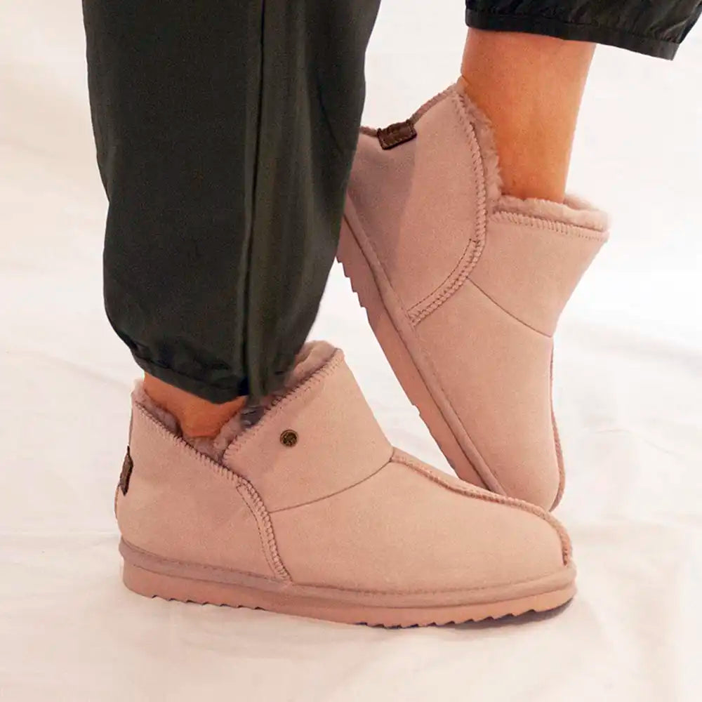 Diese Damen-Hausschuhe von Warmbat bieten eine luxuriöse Kombination aus Komfort, Wärme und Stil. Die Willow-Hausschuhe sind aus hochwertigem Wildleder gefertigt und mit weichem Schaffell gefüttert. Sie halten Ihre Füße den ganzen Tag über warm und bequem. Schaffell ist von Natur aus atmungsaktiv und temperaturregulierend und sorgt so auch an den kältesten Tagen für eine angenehme Temperatur.
