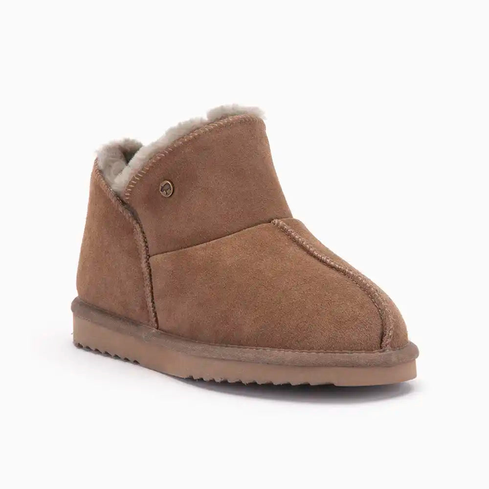 Diese Damen-Hausschuhe von Warmbat bieten eine luxuriöse Kombination aus Komfort, Wärme und Stil. Die Willow-Hausschuhe sind aus hochwertigem Wildleder gefertigt und mit weichem Schaffell gefüttert. Sie halten Ihre Füße den ganzen Tag über warm und bequem. Schaffell ist von Natur aus atmungsaktiv und temperaturregulierend und sorgt so auch an den kältesten Tagen für eine angenehme Temperatur.