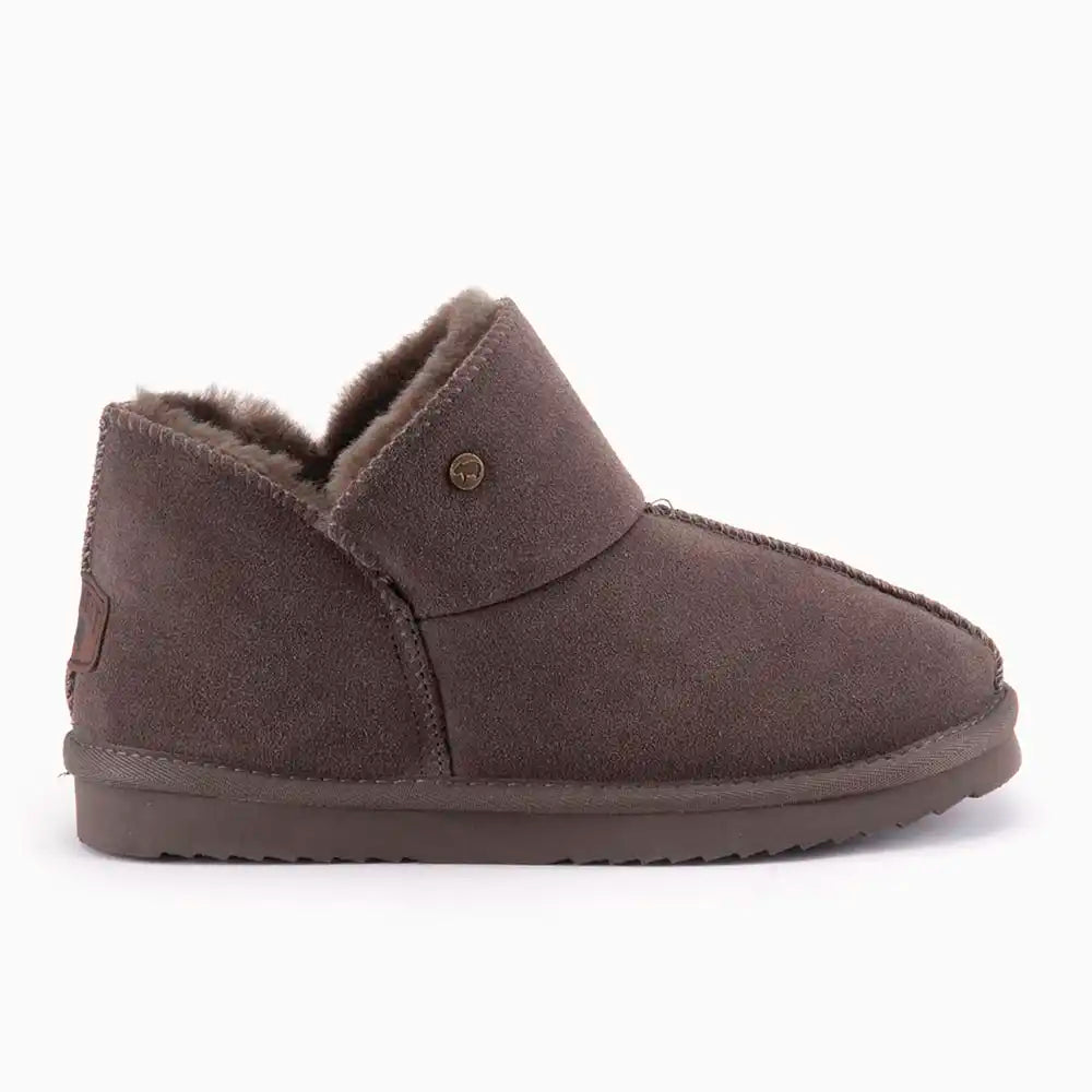 Diese Damen-Hausschuhe von Warmbat bieten eine luxuriöse Kombination aus Komfort, Wärme und Stil. Die Willow-Hausschuhe sind aus hochwertigem Wildleder gefertigt und mit weichem Schaffell gefüttert. Sie halten Ihre Füße den ganzen Tag über warm und bequem. Schaffell ist von Natur aus atmungsaktiv und temperaturregulierend und sorgt so auch an den kältesten Tagen für eine angenehme Temperatur.
