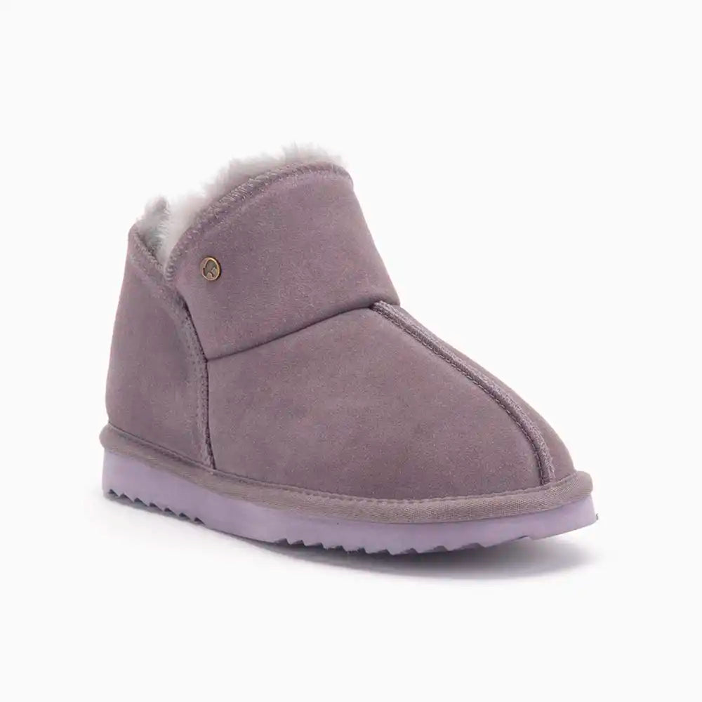 Diese Damen-Hausschuhe von Warmbat bieten eine luxuriöse Kombination aus Komfort, Wärme und Stil. Die Willow-Hausschuhe sind aus hochwertigem Wildleder gefertigt und mit weichem Schaffell gefüttert. Sie halten Ihre Füße den ganzen Tag über warm und bequem. Schaffell ist von Natur aus atmungsaktiv und temperaturregulierend und sorgt so auch an den kältesten Tagen für eine angenehme Temperatur.