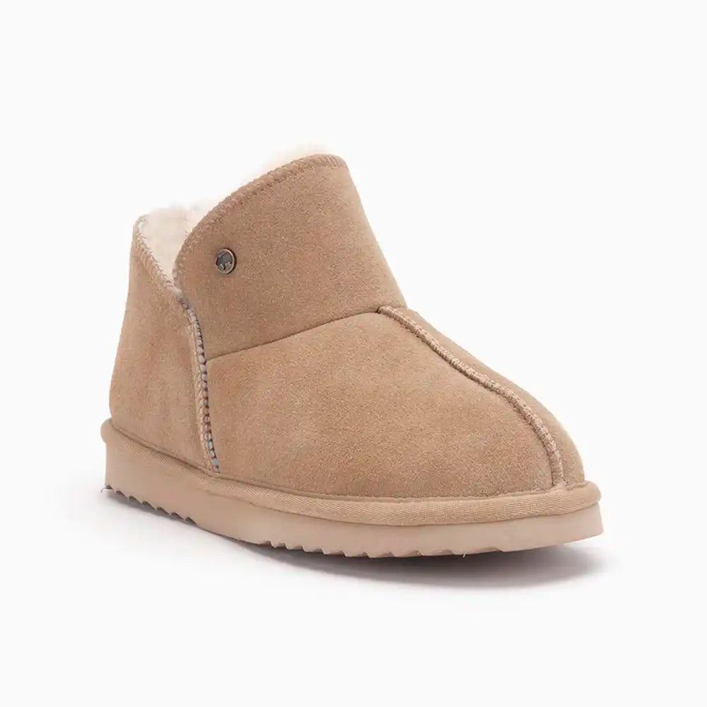 Diese Damen-Hausschuhe von Warmbat bieten eine luxuriöse Kombination aus Komfort, Wärme und Stil. Die Willow-Hausschuhe sind aus hochwertigem Wildleder gefertigt und mit weichem Schaffell gefüttert. Sie halten Ihre Füße den ganzen Tag über warm und bequem. Schaffell ist von Natur aus atmungsaktiv und temperaturregulierend und sorgt so auch an den kältesten Tagen für eine angenehme Temperatur.